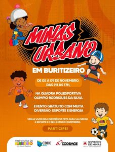 A Prefeitura Municipal de Buritizeiro, no Norte de Minas Gerais, por meio da Secretaria de Esporte, prepara uma programação especial para quem gosta de atividade física, cultura urbana e integração social. Entre os dias 05 e 09 de novembro, a cidade receberá o Minas Urbano, um evento que promete agitar crianças, jovens e adultos.