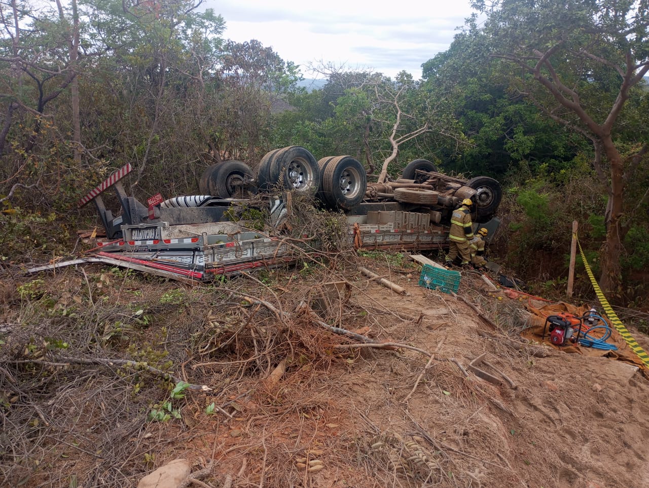 De acordo com a Polícia Militar Rodoviária, o motorista conduzia um caminhão VW/24 de cor branca, carregado com areia, quando perdeu o controle da direção e capotou às margens da rodovia. O veículo saiu da pista e ficou completamente destruído.