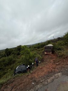 Com o impacto, os dois veículos foram lançados em uma ribanceira às margens da rodovia. No carro, com placa de São Paulo, estavam duas mulheres e um homem. As vítimas ficaram presas às ferragens e morreram ainda no local.