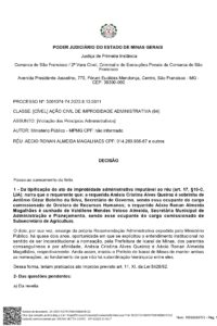 A Justiça da Comarca de São Francisco, no Norte de Minas, apura denúncia de improbidade administrativa envolvendo o prefeito de Icaraí de Minas, Gonsalo Antonio Mendes de Magalhães, e o secretário de Governo, Antônio Cézar Botelho da Silva, em ação civil pública proposta pelo Ministério Público de Minas Gerais por suposta prática de nepotismo na nomeação de cargos comissionados.