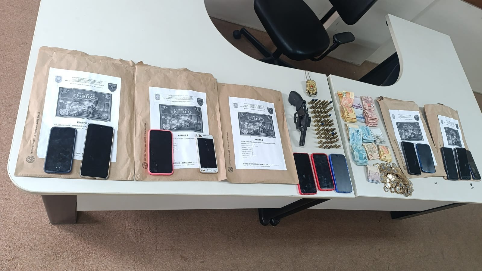 Durante a operação, os policiais apreenderam dinheiro, aparelhos celulares, munições e um revólver calibre 38. As investigações seguem em andamento.