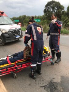 SAMU socorre motociclista ferido após colisão com carro na BR-365, em Montes Claros