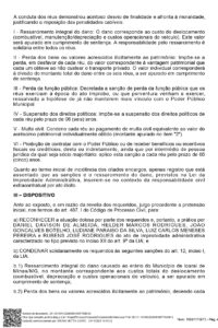 Entre as sanções aplicadas estão a perda da função pública, a suspensão dos direitos políticos por seis anos, a proibição de contratar com o poder público por cinco anos, além de multa civil e obrigação de ressarcimento ao erário. O valor do dano ainda será definido em fase posterior do processo, e o ressarcimento deverá ser feito de forma solidária.