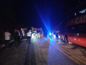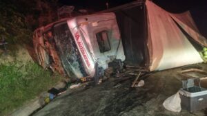 Um grave acidente foi registrado na noite deste domingo (28), por volta das 20h44, na BR-251, na Serra de Francisco Sá, no Norte de Minas. Um caminhão carregado com coco verde, que seguia da Bahia com destino a Santa Catarina, perdeu o controle da direção por causas ainda não esclarecidas e tombou às margens da rodovia, nas proximidades do km 478.