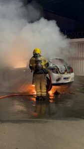 Incêndio após colisão destrói carro no bairro Planalto durante a madrugada