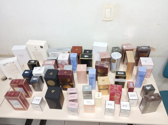 Entre os itens recolhidos estavam 18 aparelhos iPhone 17 Pro Max, oito iPads, 49 frascos de perfumes importados, além de um relógio inteligente da marca Apple e um robô aspirador.