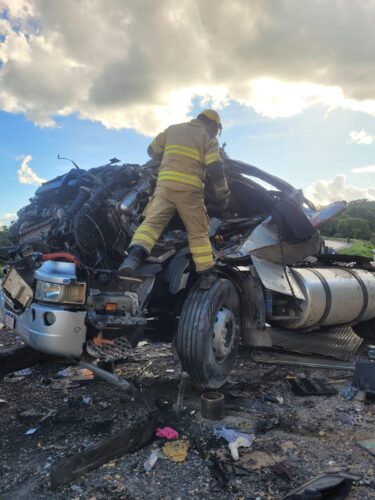 Após a liberação da área pela Perícia Técnica da Polícia Civil, os bombeiros, com apoio de um serviço de guincho, realizaram o destombamento da carreta. Em seguida, utilizando equipamentos de proteção e técnicas específicas de salvamento veicular, a equipe fez a retirada das ferragens e a liberação do corpo.