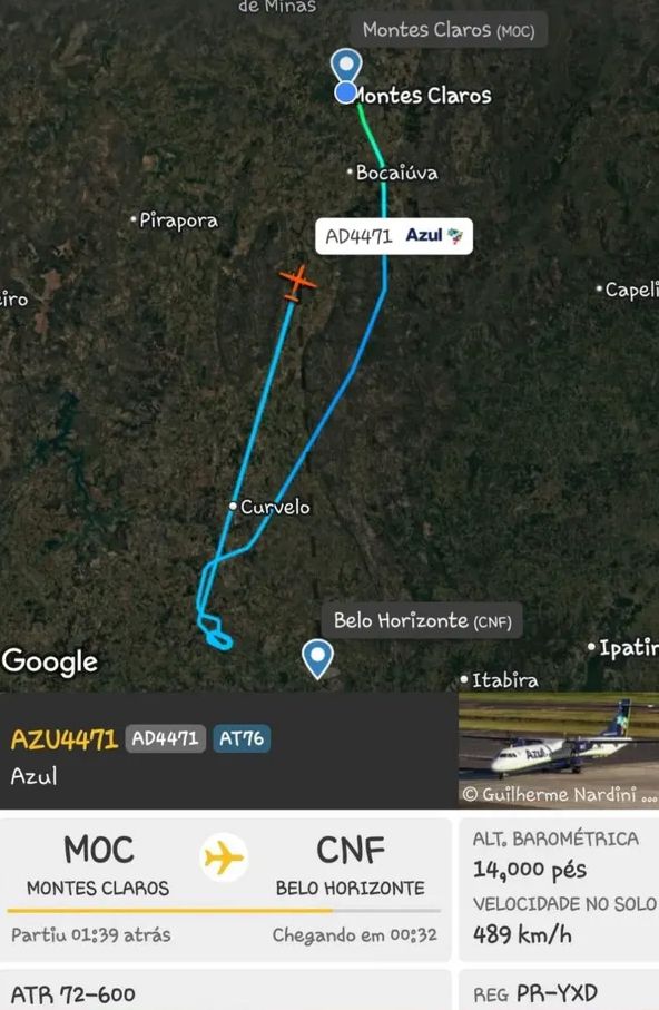 De acordo com informações do site de monitoramento aéreo Flightradar, a aeronave modelo ATR realizou o procedimento de retorno como medida preventiva de segurança, já que o mau tempo impossibilitava o pouso em Confins naquele momento.
