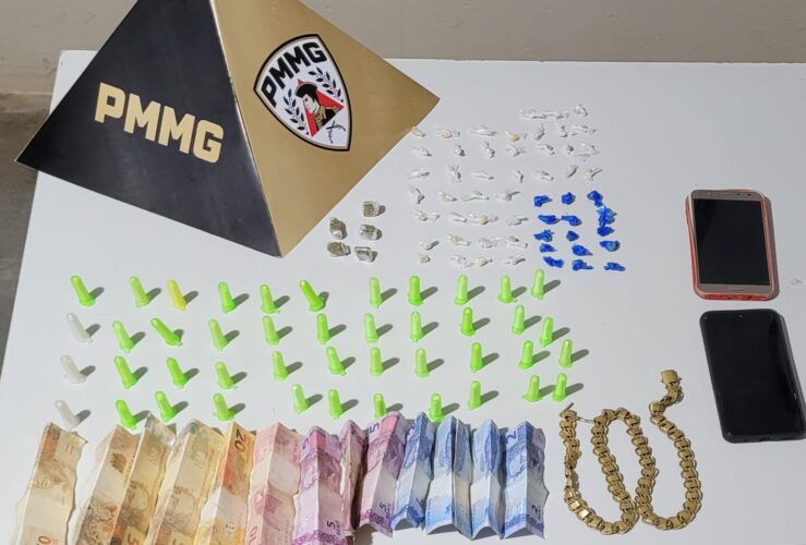 Após buscas na região, dois adolescentes foram localizados e abordados. Com eles, foram encontradas porções de substâncias semelhantes a crack, cocaína e maconha, além de dinheiro e telefones celulares.