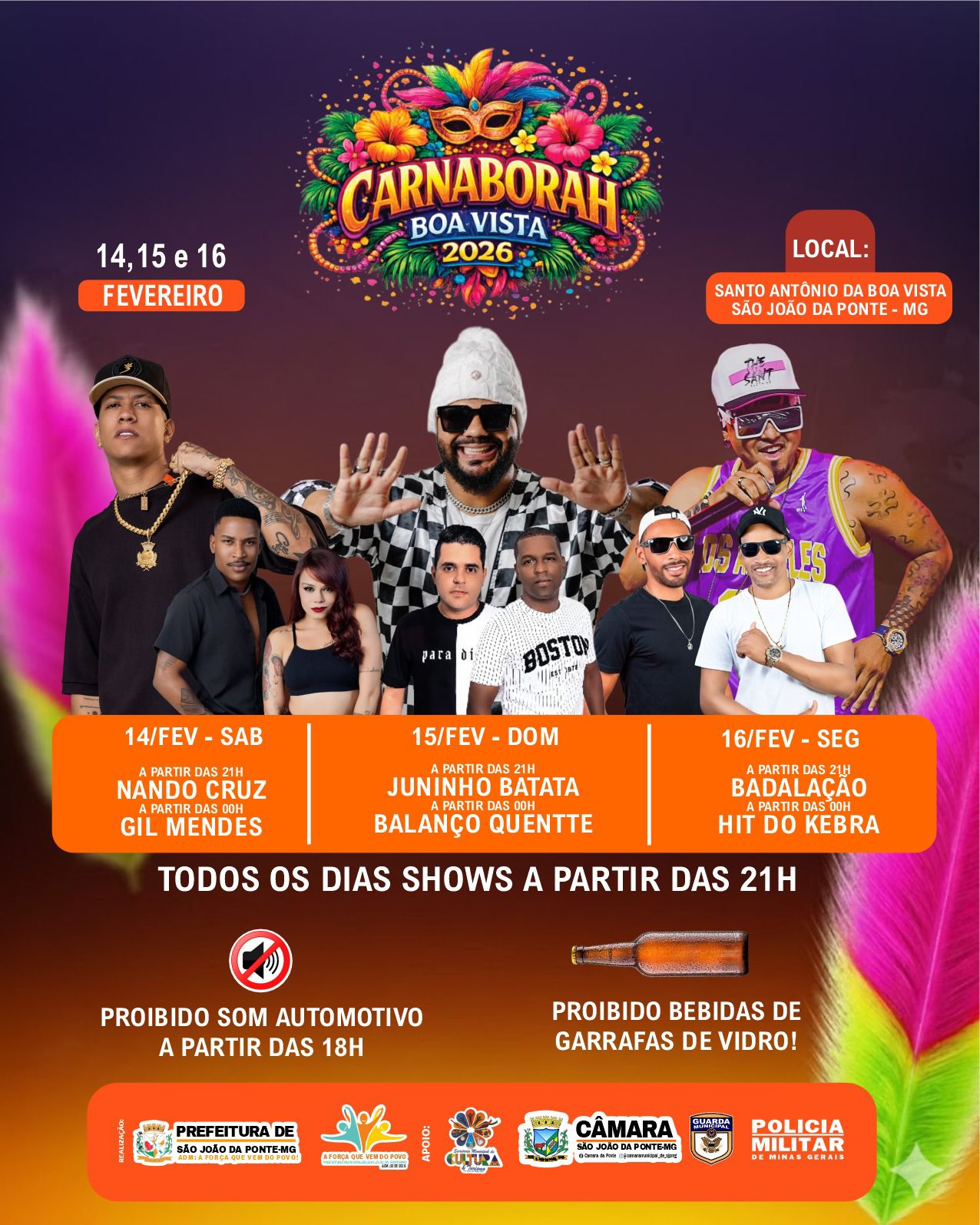 A Prefeitura de São João da Ponte confirmou a realização do tradicional CarnaBorah 2026, um dos eventos mais aguardados do calendário cultural do município. A festa será realizada nos dias 14, 15 e 16 de fevereiro, no Distrito de Santo Antônio da Boa Vista, e promete três dias de muita animação, cultura e celebração popular.