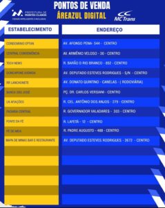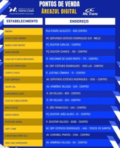 Motoristas que utilizam o estacionamento rotativo em Montes Claros podem adquirir tickets do Áreazul Digital em pontos de venda físicos, sem necessidade de aplicativo ou acesso à internet. Para utilizar o serviço, basta informar a placa do veículo e efetuar o pagamento no local.