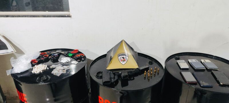 Além dos entorpecentes, também foi apreendida uma pistola calibre .40 acompanhada de um carregador com 10 munições intactas, bem como aparelhos celulares de procedência duvidosa. O suspeito detido assumiu a propriedade de todo o material encontrado pelos militares.