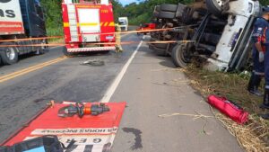 Carreta tomba na BR-251 e deixa uma vítima fatal em Salinas, Norte de Minas