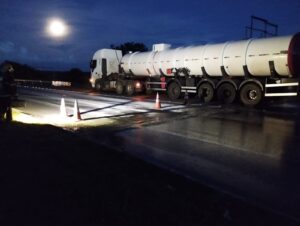 Colisão entre carretas provoca vazamento de ácido e interdita a MGC-135 em Engenheiro Dolabela