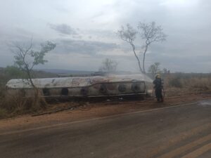 Tombamento de caminhão com combustível mobiliza equipes de emergência em Olhos D’Água