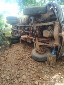 Motorista fica ferido após capotar caminhão na Estrada da Produção