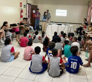 Equipe de Saneamento do Codanorte ministra palestra sobre educação ambiental e coleta seletiva na Fundação Fé e Alegria, em Montes Claros