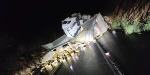 Acidente em Jequitaí: caminhão com 15 toneladas de creme para cabelo tomba na BR-356