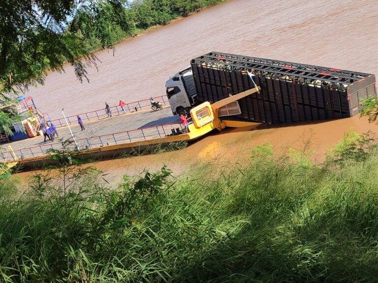 Carreta boiadeira se envolve em acidente durante travessia de balsa em Manga