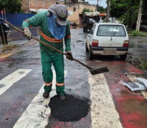 Chuvas intensas motivam operação tapa-buracos em vias estratégicas de Montes Claros