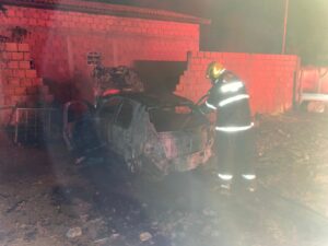 Motorista perde o controle, bate em muro de casa e carro pega fogo, em Janaúba