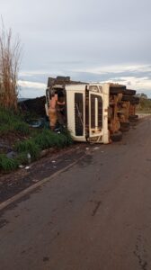 Carreta carregada com livros didáticos tomba no Anel Viário Leste de Montes Claros