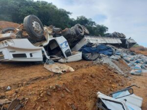 Acidente na BR-135: Resgate após capotamento de carreta em Montes Claros