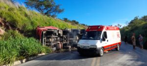 Carreta carregada com pedras perde o controle e tomba na BR-251, na serra de Francisco Sá