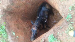 Mangalarga Marchador cai dentro de fossa após estrutura ceder, em Montes Claros