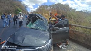 Batida entre carro e carreta carregada de leite deixa um ferido na BR-365, em Montes Claros