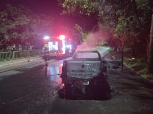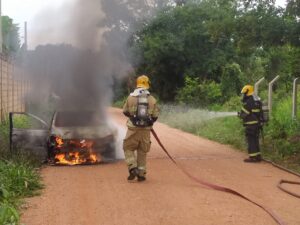 Carro pega fogo no bairro Vila Regina, em Montes Claros