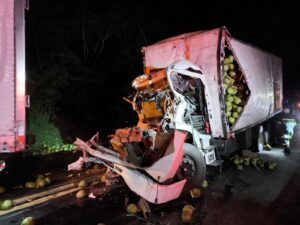Caminhão colide com carreta na Serra de Bocaiuva e deixa uma vítima presa às ferragens