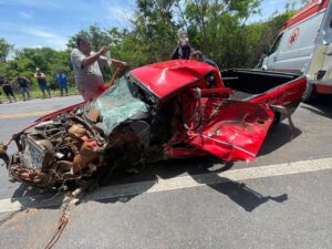 Colisão frontal na BR-251 deixa motorista preso às ferragens em Salinas