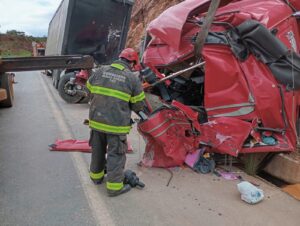 Colisão entre carretas na BR-251 resulta em vítima fatal e interdição de rodovia