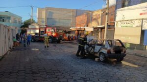 Carro em chamas no centro de Bocaiuva assusta moradores e mobiliza Bombeiros
