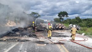 Grave acidente entre carretas causa incêndio e deixa duas vítimas fatais na BR-251