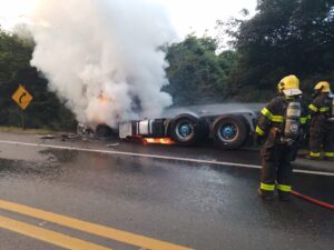 Caminhão pega fogo na MGC-135 próximo a Engenheiro Navarro