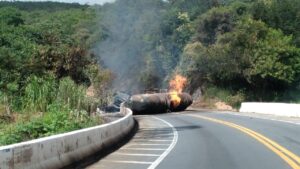 Grave acidente com caminhão carregado de etanol interdita a BR-251 em Fruta de Leite